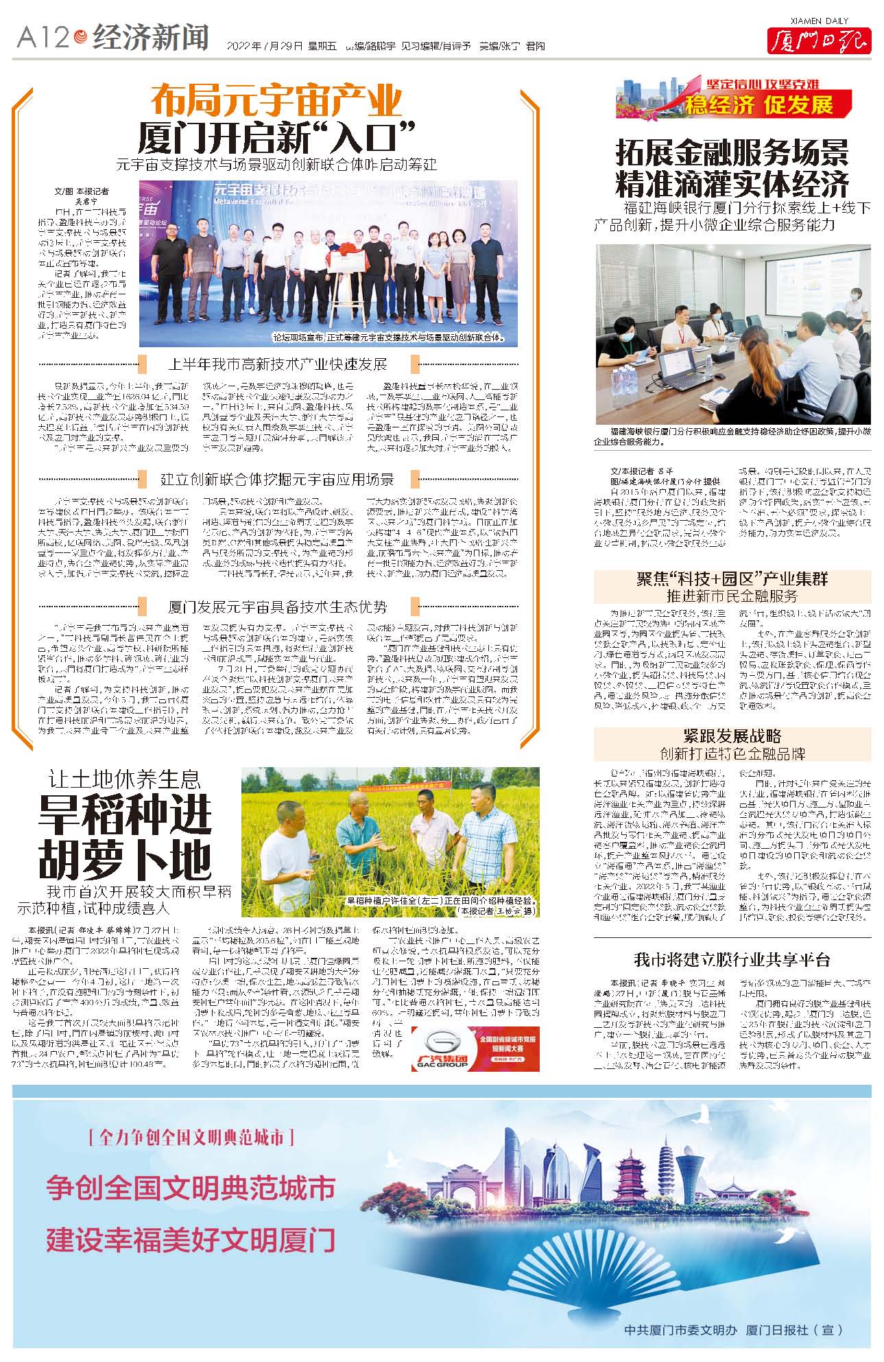 记者了解到,为支持科技创新,推动产业高质量发展,今年5月,我市出台《厦门市支持创新联合体建设工作指引》,旨在打通科技前沿和市场需求前沿的边界,为我市未来产业骨干企业及未来产业整体发展提供有力支撑。元宇宙支撑技术与场景驱动创新联合体的建立,是落实该工作指引的具体措施,将聚焦行业创新技术和前沿成果,赋能实体产业与商业。