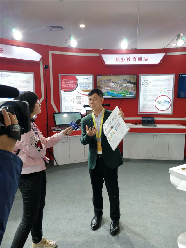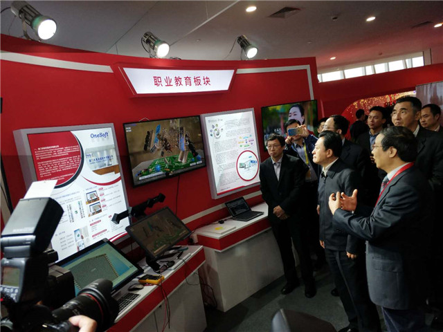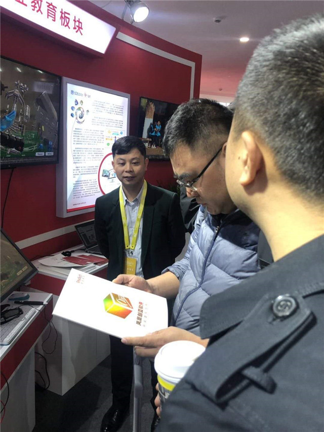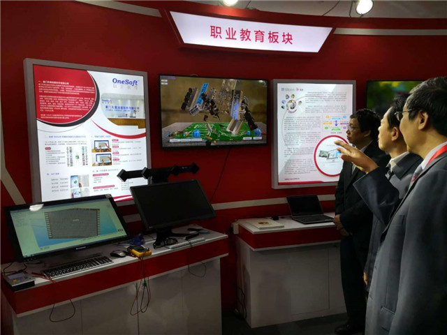 凤凰创壹作为凤凰传媒集团旗下职业教育板块企业参展,全国政协委员、中国音像与数字出版协会理事长孙寿山及中宣部相关领导莅临创壹展位,体验了100VR可视化智能交互教育云平台、智能实验设备智能万用表、智能示波表、裸眼3D、VR仿真教学培训系统、AR书本等产品。