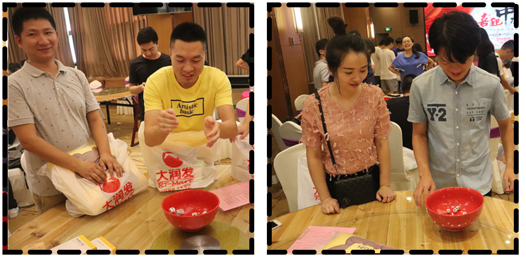 响彻着骰子的清脆响声,“一秀”、“二举”、“三红”、“状元”等幸运组合,让现场的欢呼此起彼伏,欢乐的气氛从未间断。一个个博饼碗带出欢声笑语,六个骰子百变出欢乐精彩,每一桌都洋溢着欢乐与激情,经过将近一个小时,每个人手中的购物袋基本装的满满当当,随着十几位状元的诞生,本次创壹中秋宴迎来了完美的句点。