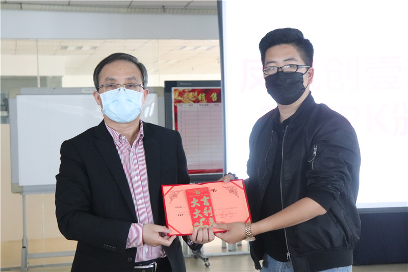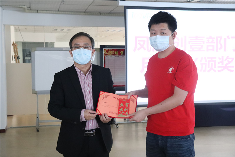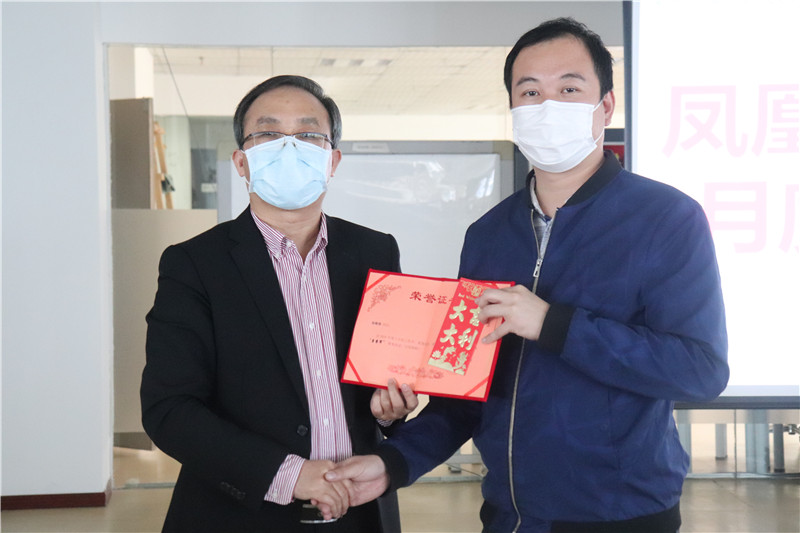 图为林庆平博士为营销中心李进鑫同事颁奖