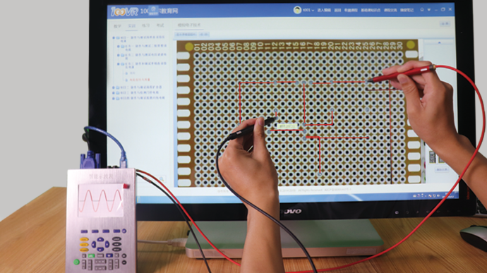 智能示波表在将表笔测量触摸显示器上的三维虚拟仿真电路上,被测位置的相关波形图能够同步显示在该智示波表的显示屏上;实际操作测量,完全仿真实际操作体验。