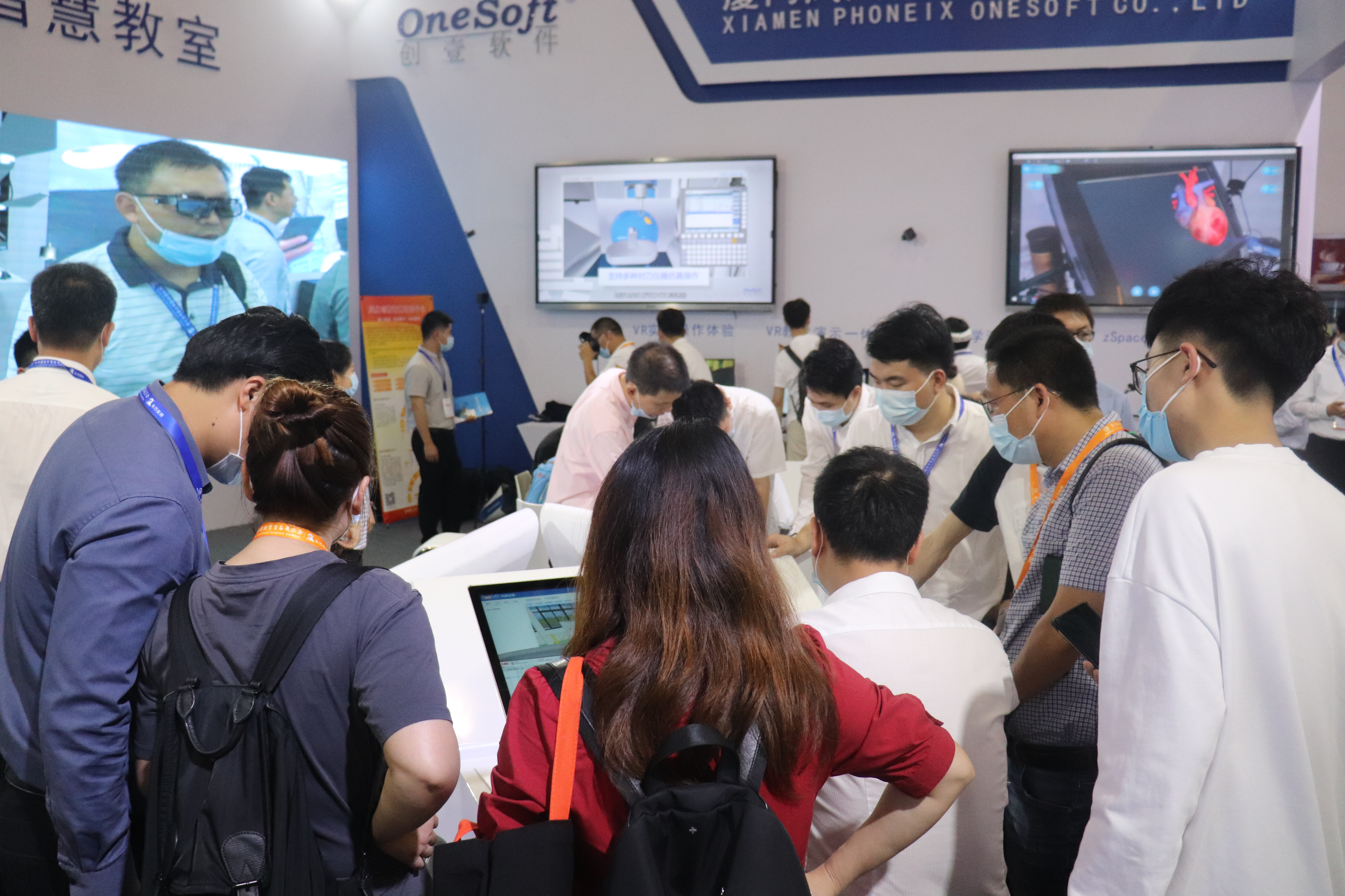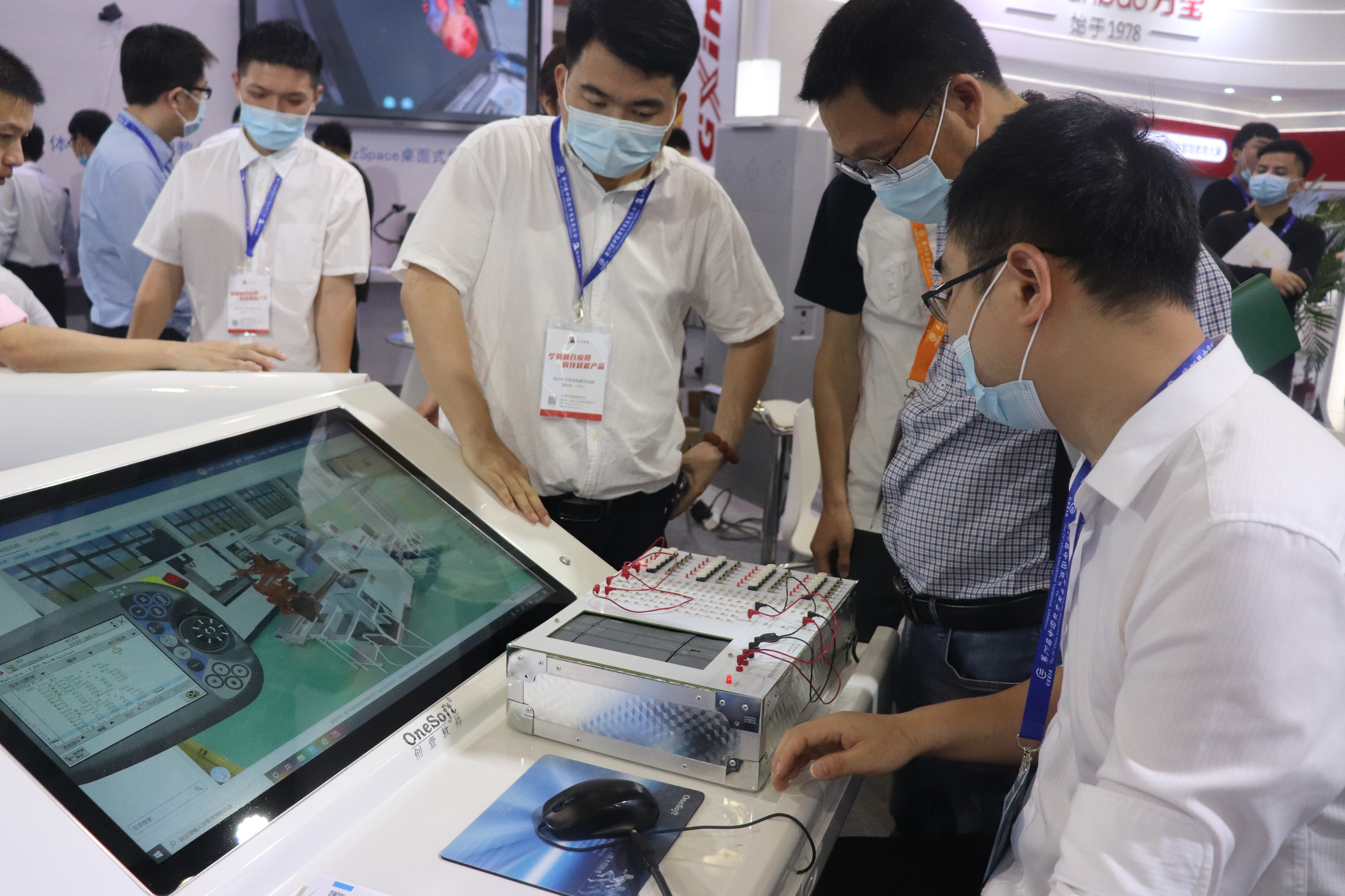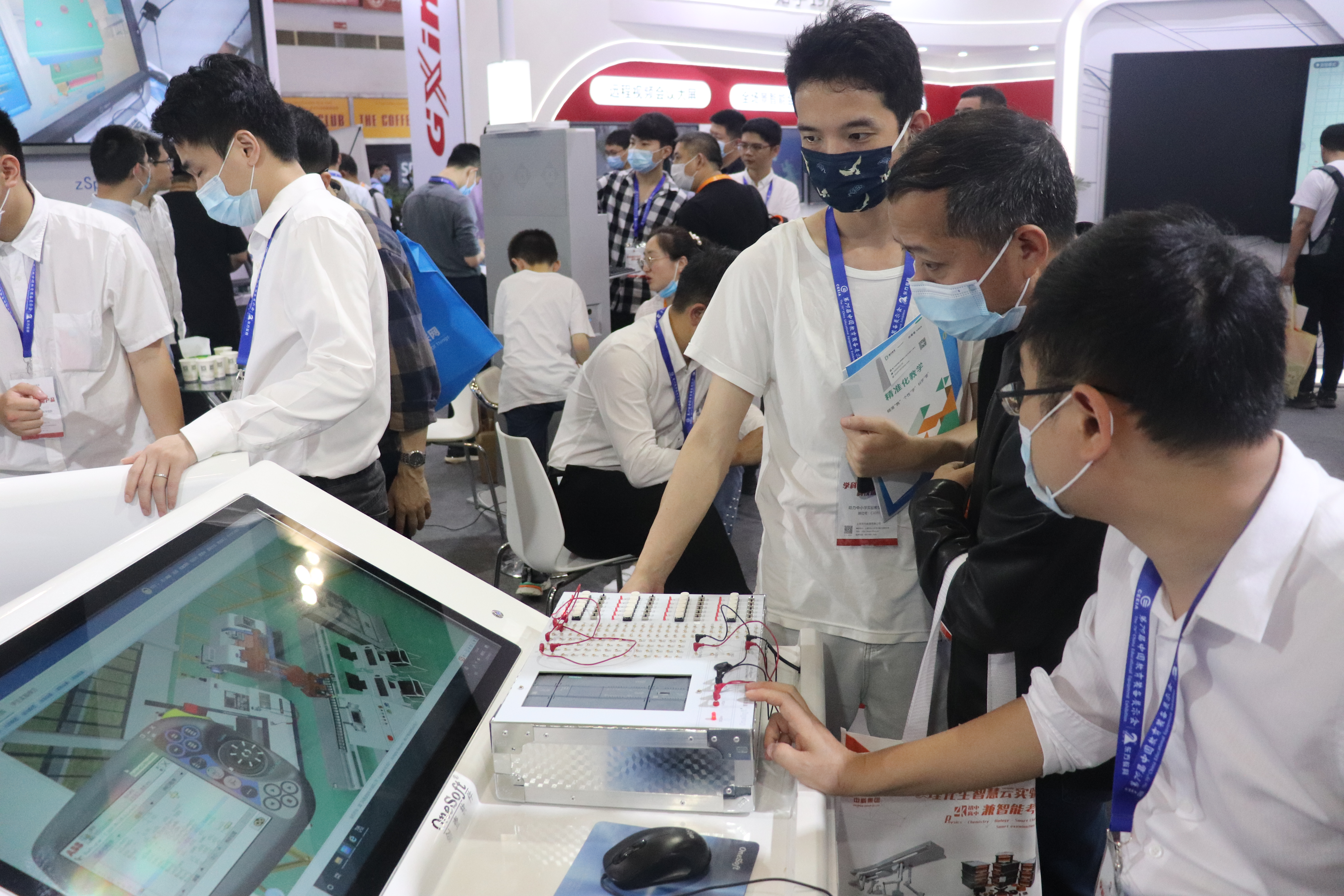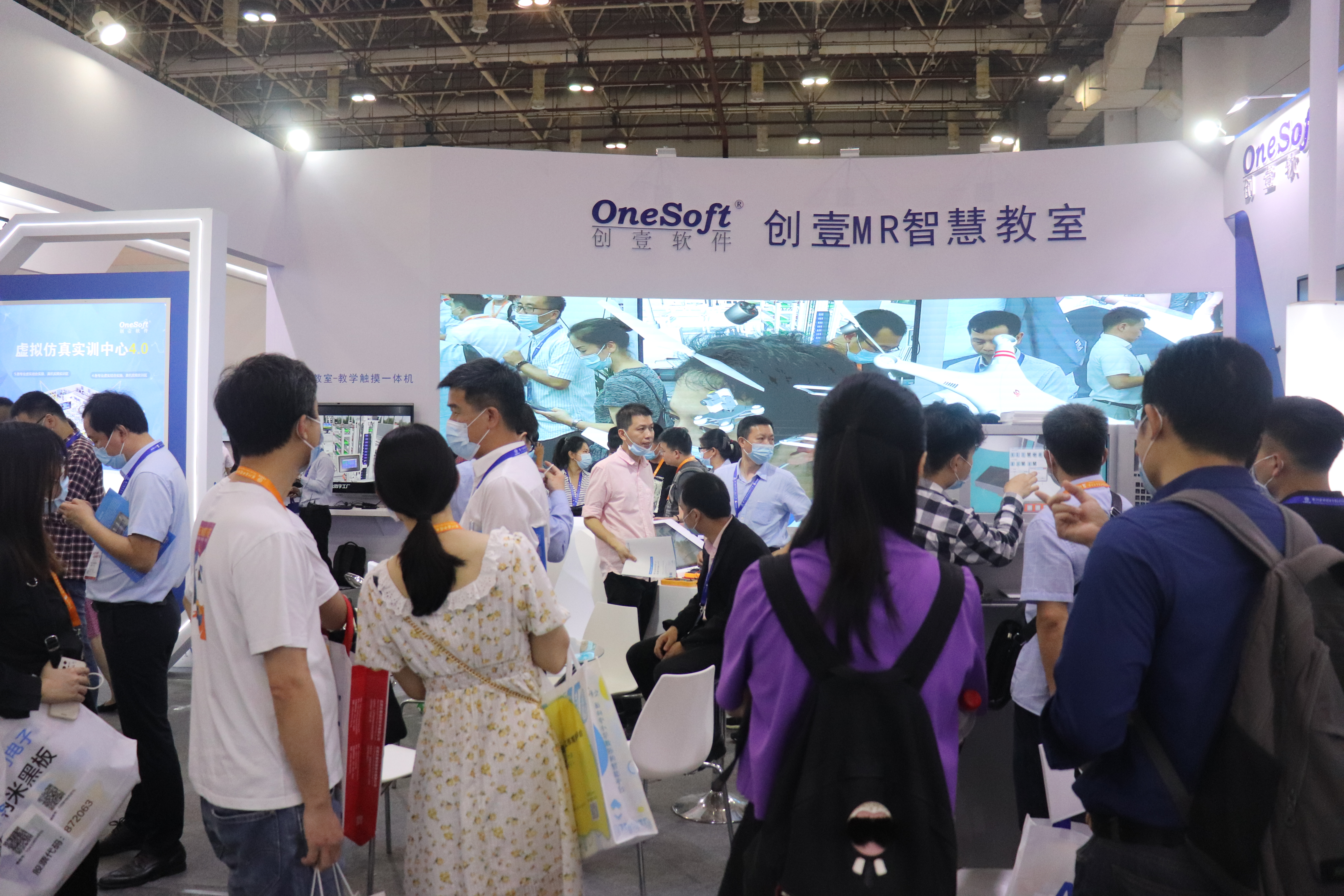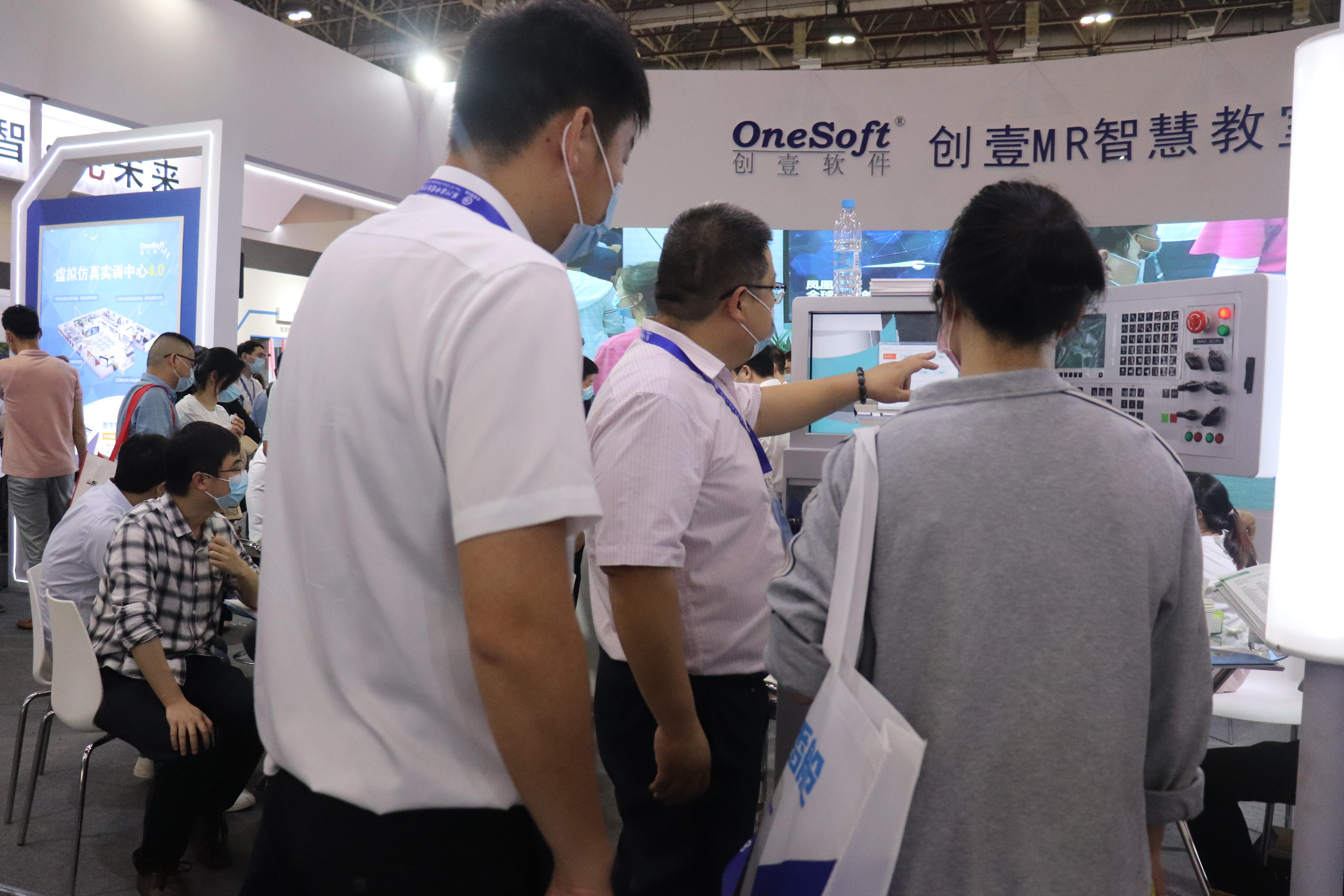 创壹展台设置了“数字孪生智能实验、MR智慧教室、MR/VR/AR仿真系统、数控V8实训仪设备”多个展区,清晰展示了创壹产品如何针对性解决教学痛点与实训瓶颈,帮助学校、师生提供全方位的智慧教学、实训服务。