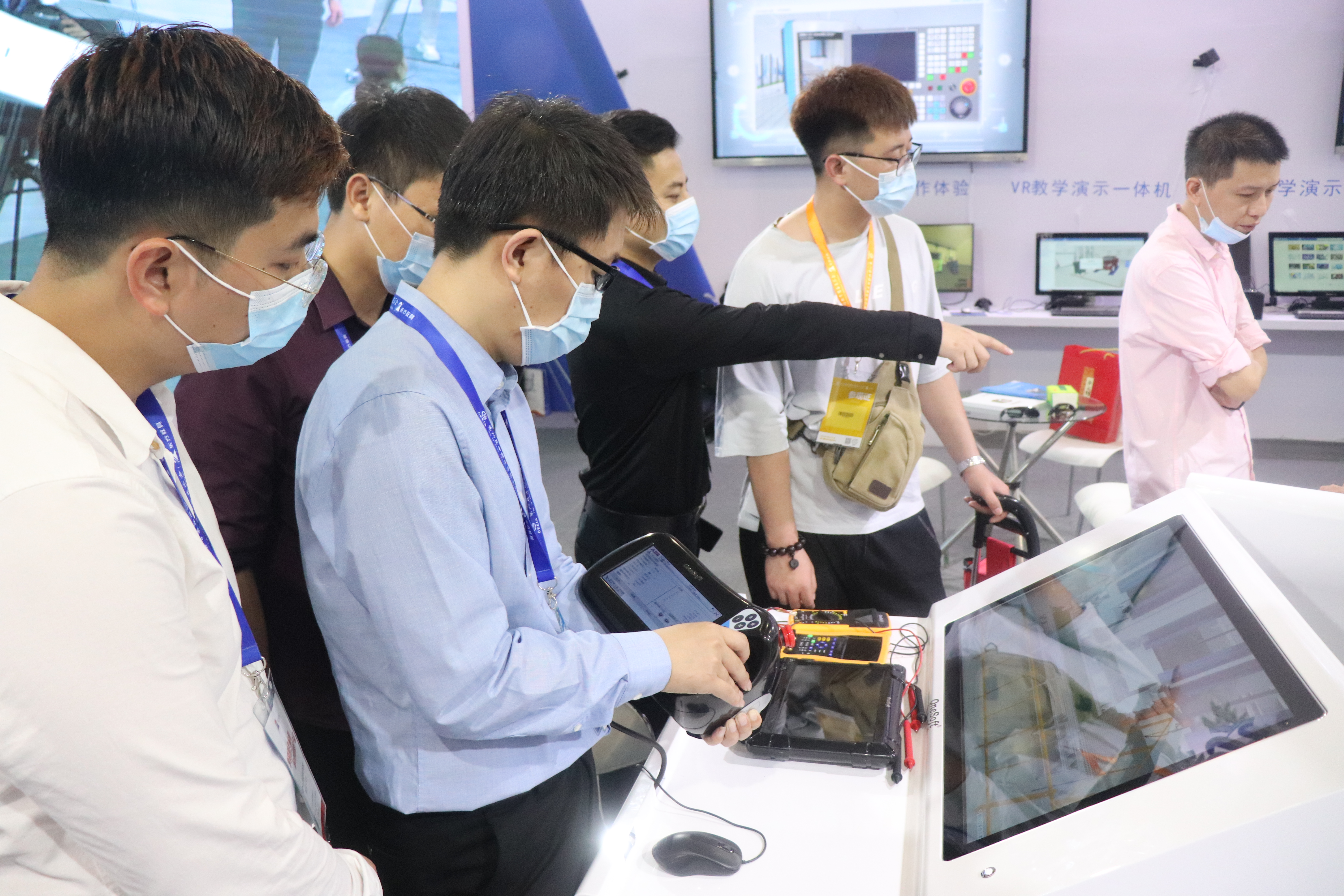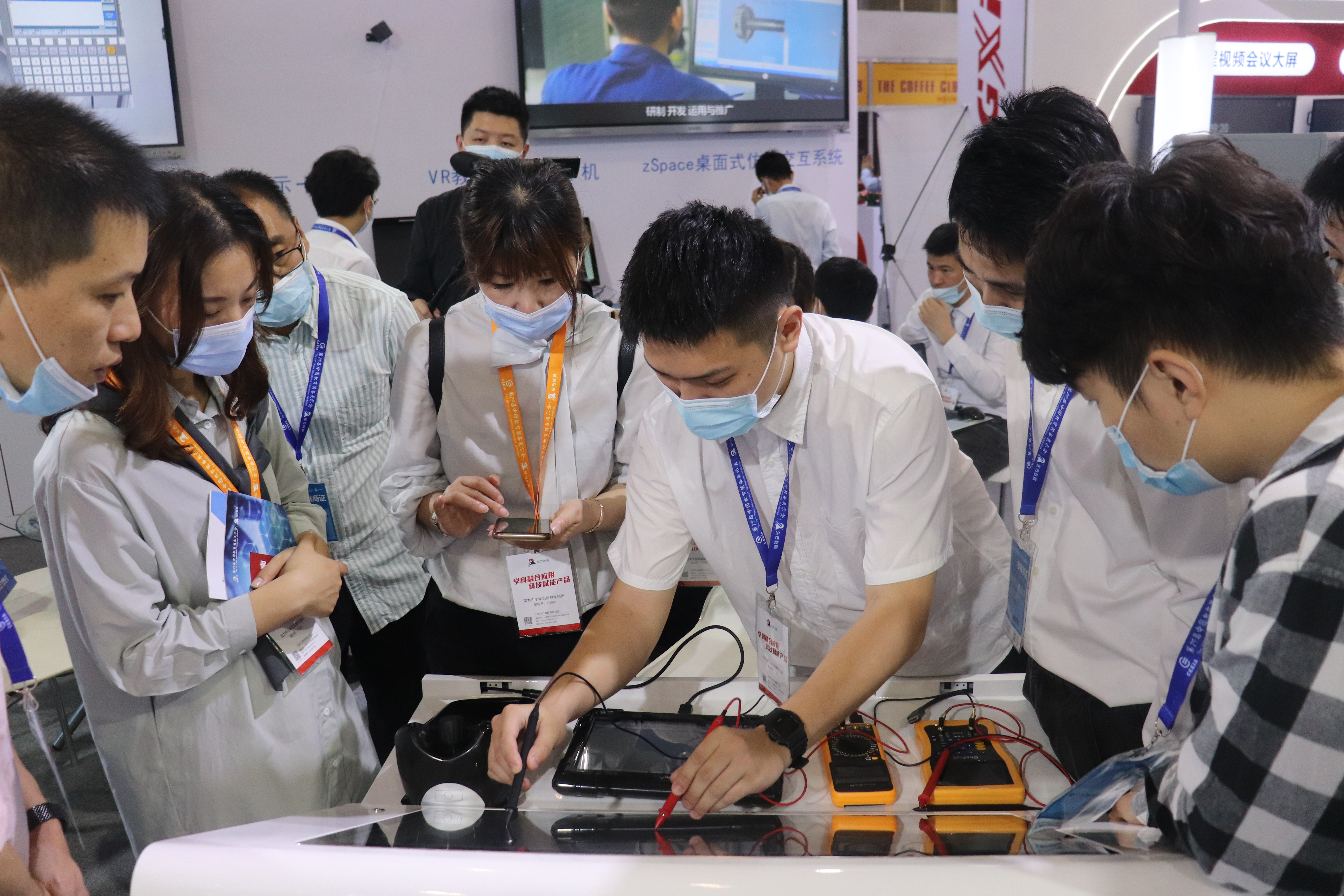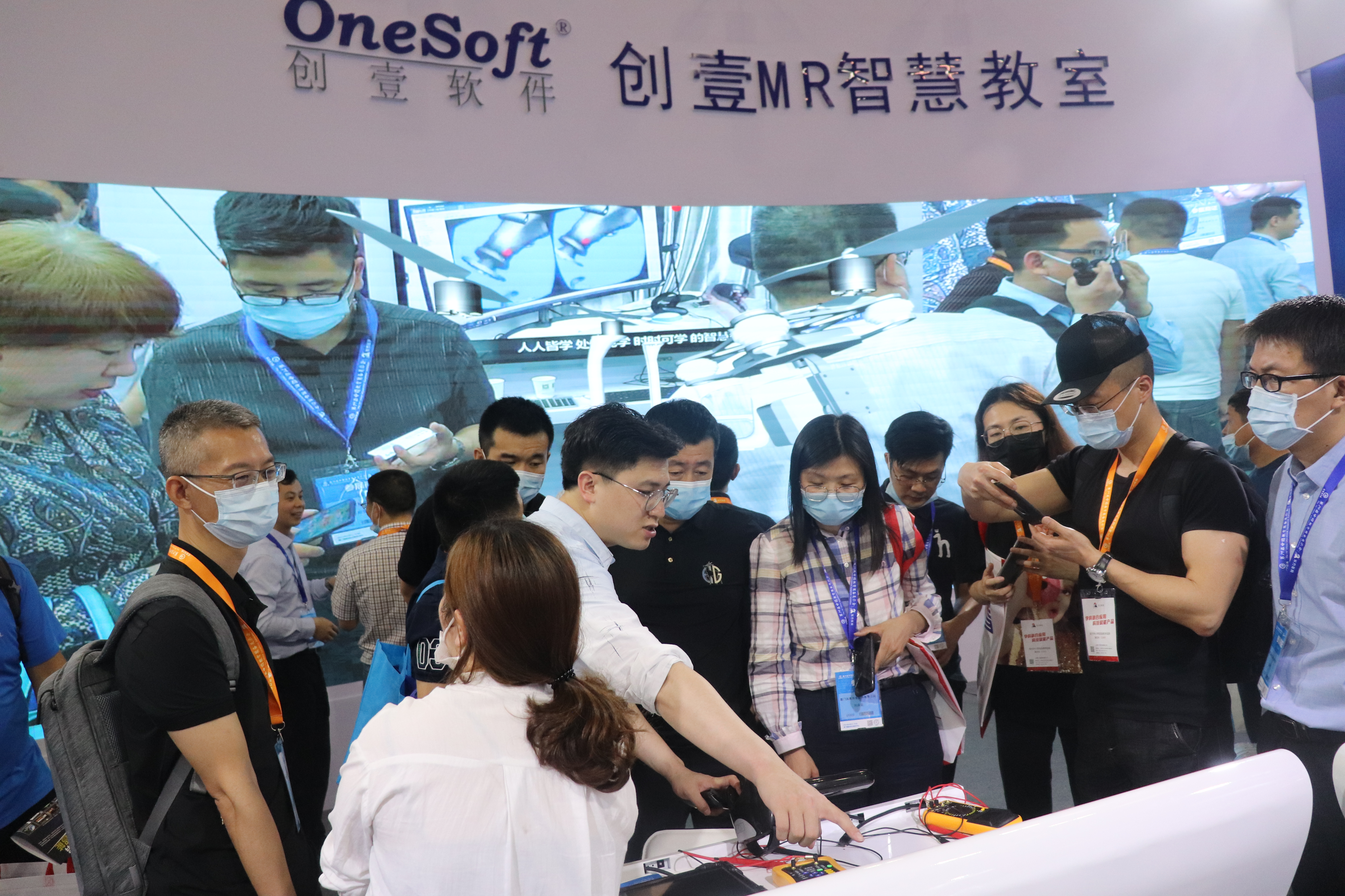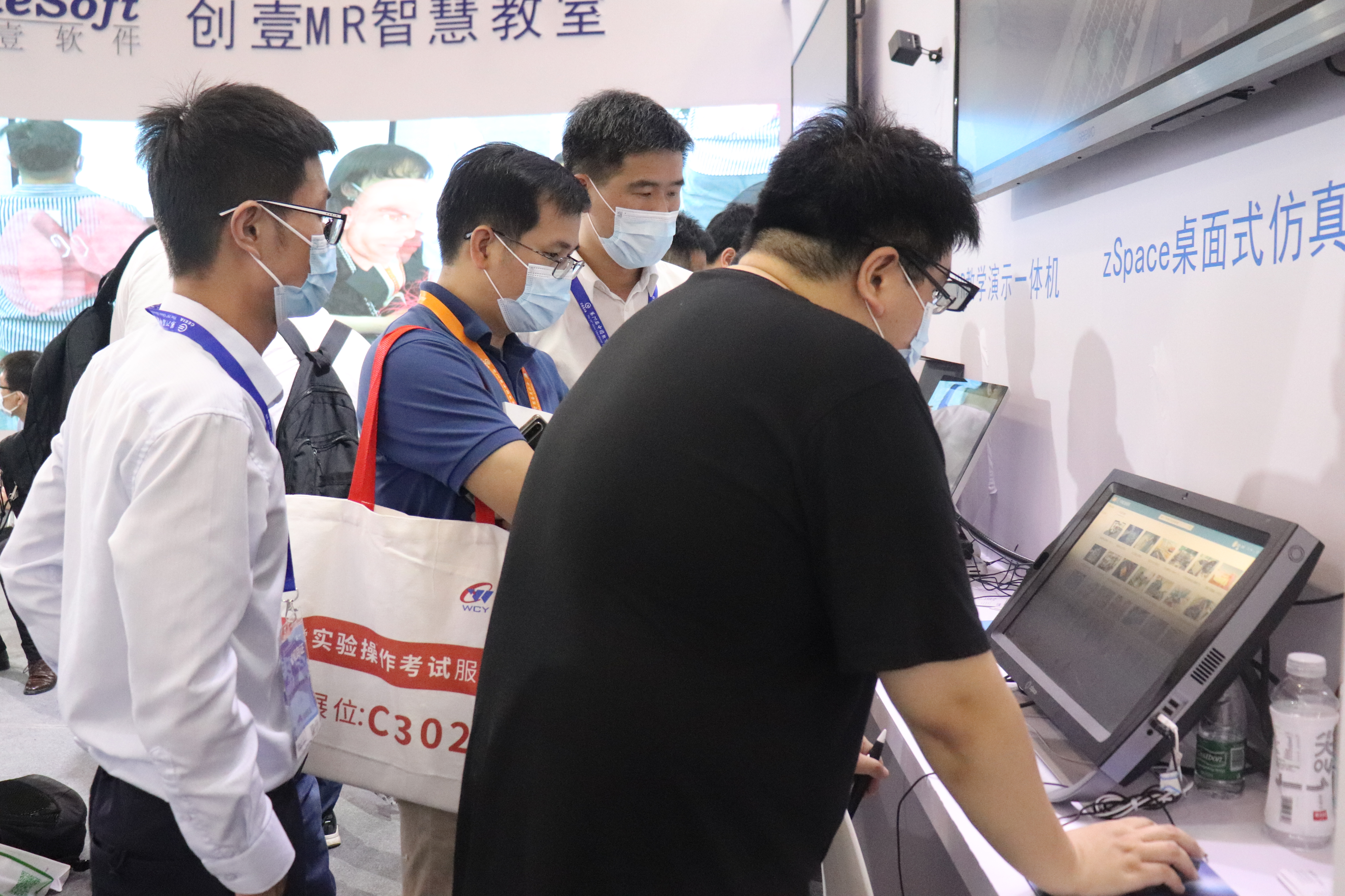创壹展台设置了“数字孪生智能实验、MR智慧教室、MR/VR/AR仿真系统、数控V8实训仪设备”多个展区,清晰展示了创壹产品如何针对性解决教学痛点与实训瓶颈,帮助学校、师生提供全方位的智慧教学、实训服务。