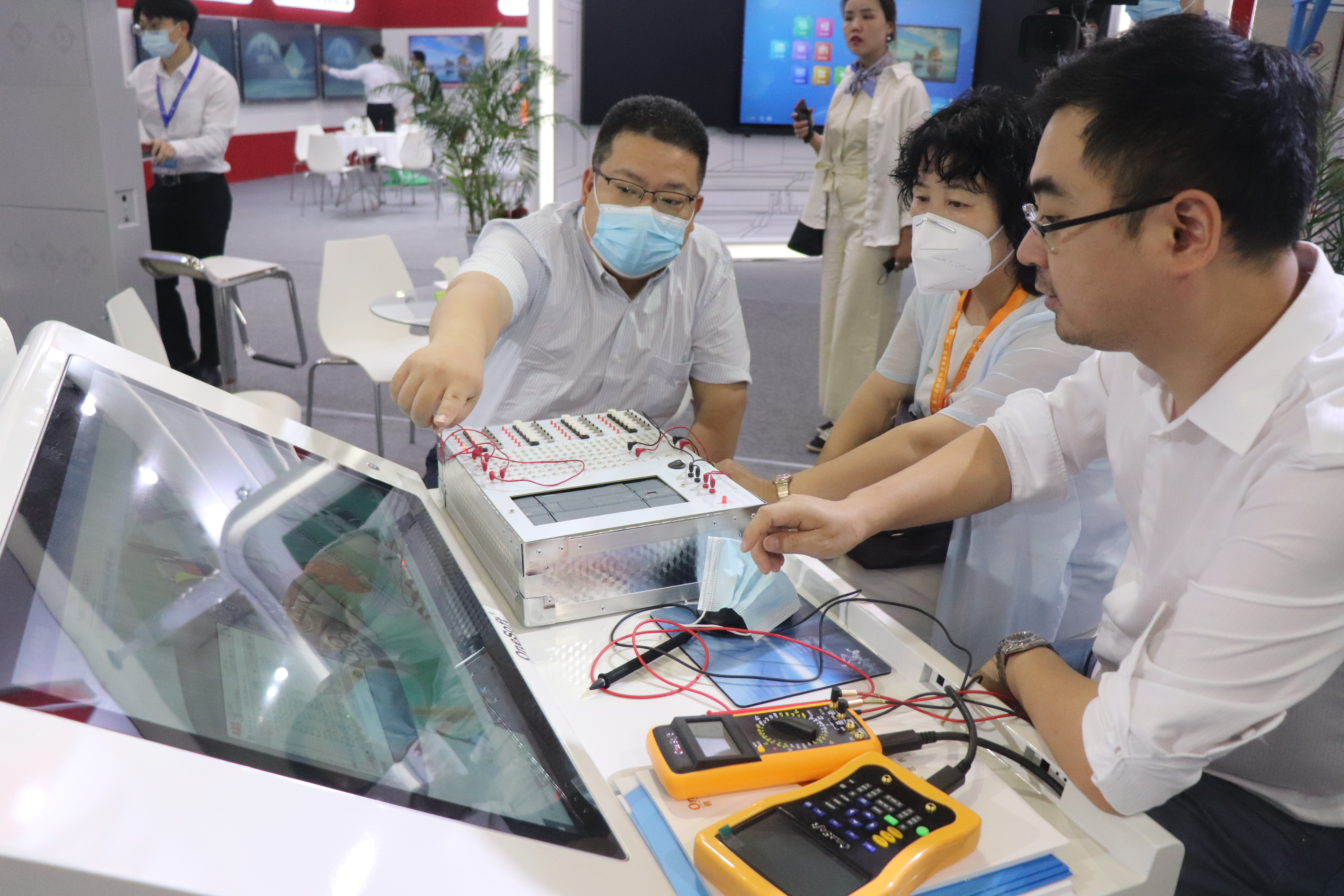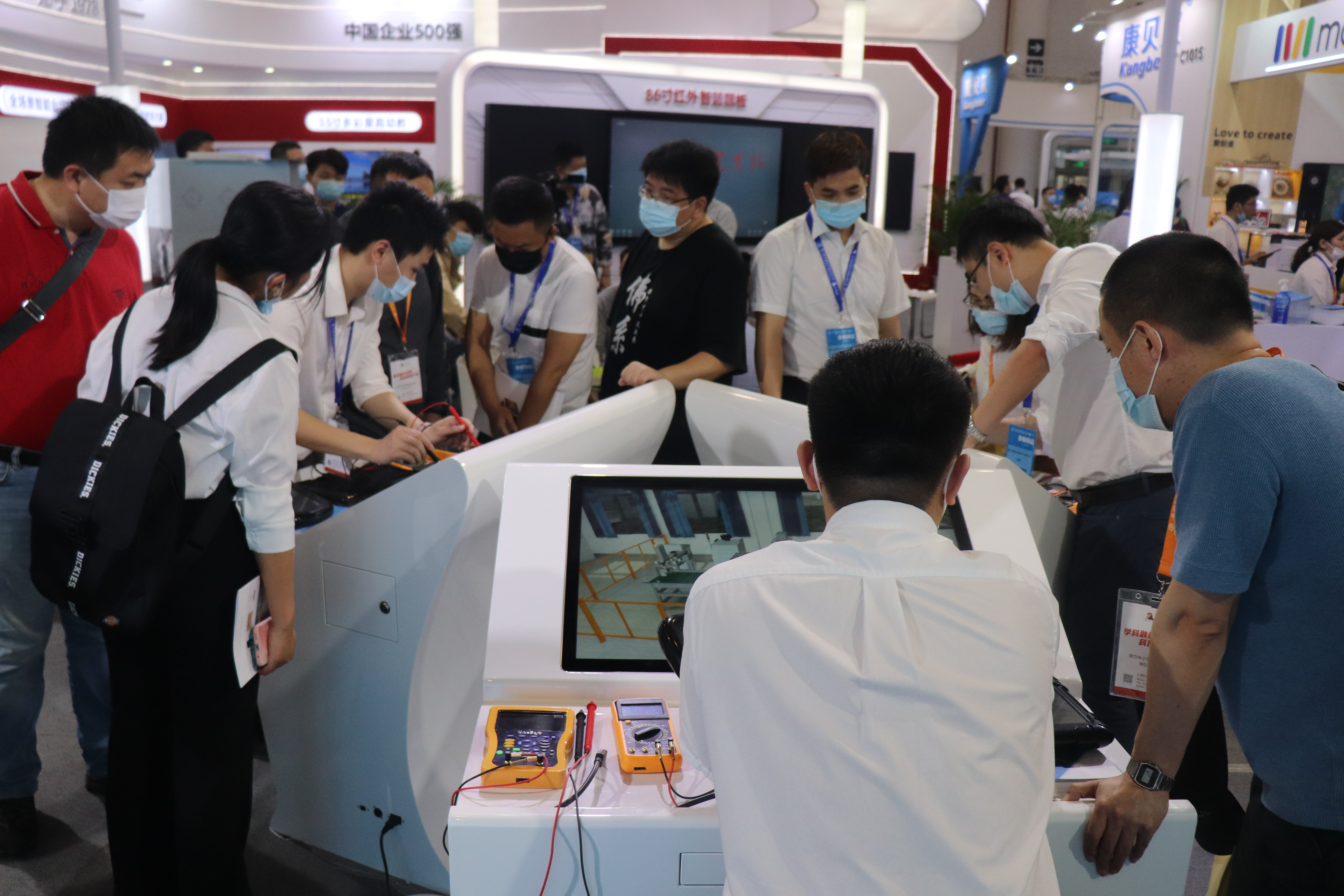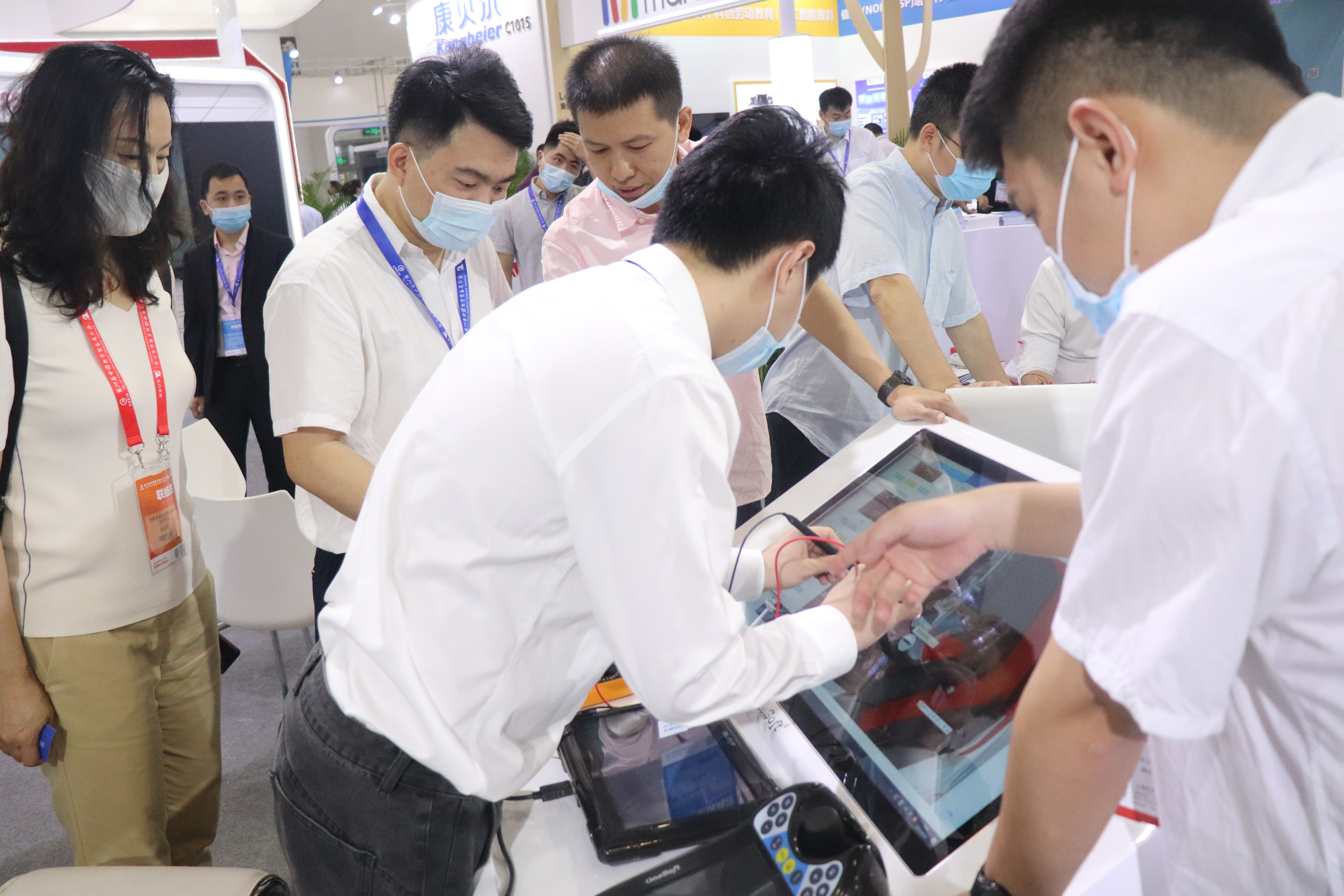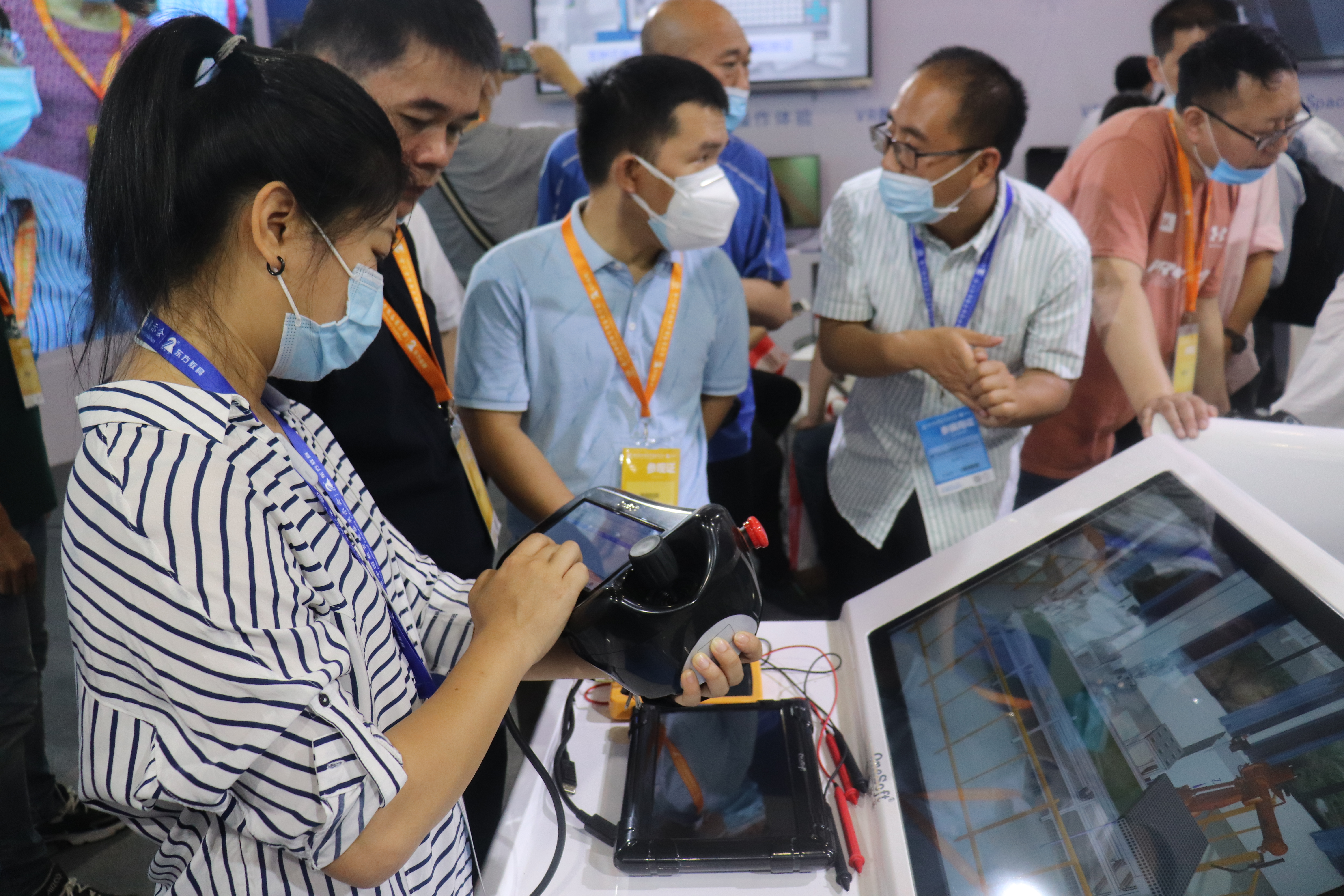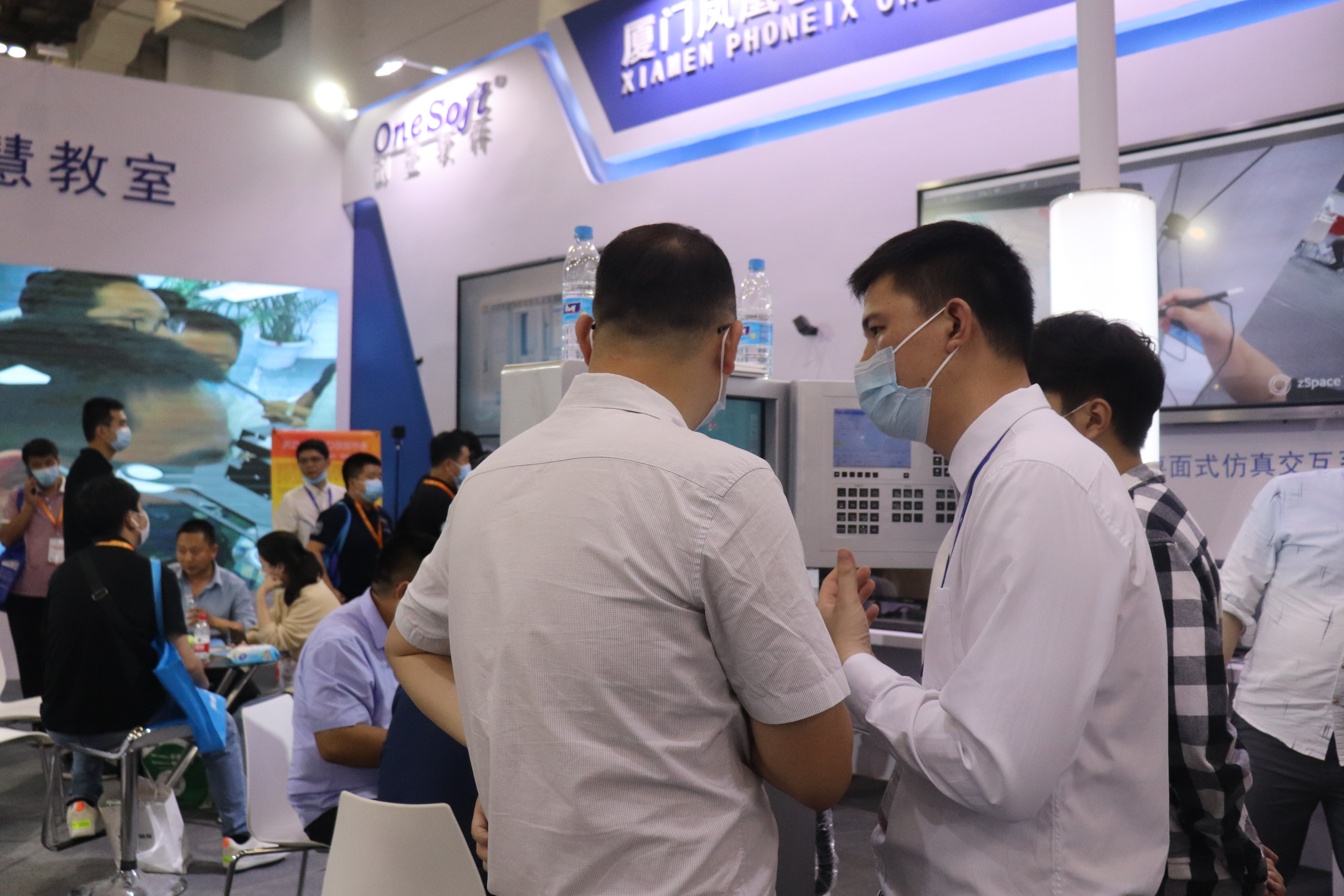 创壹展台设置了“数字孪生智能实验、MR智慧教室、MR/VR/AR仿真系统、数控V8实训仪设备”多个展区,清晰展示了创壹产品如何针对性解决教学痛点与实训瓶颈,帮助学校、师生提供全方位的智慧教学、实训服务。