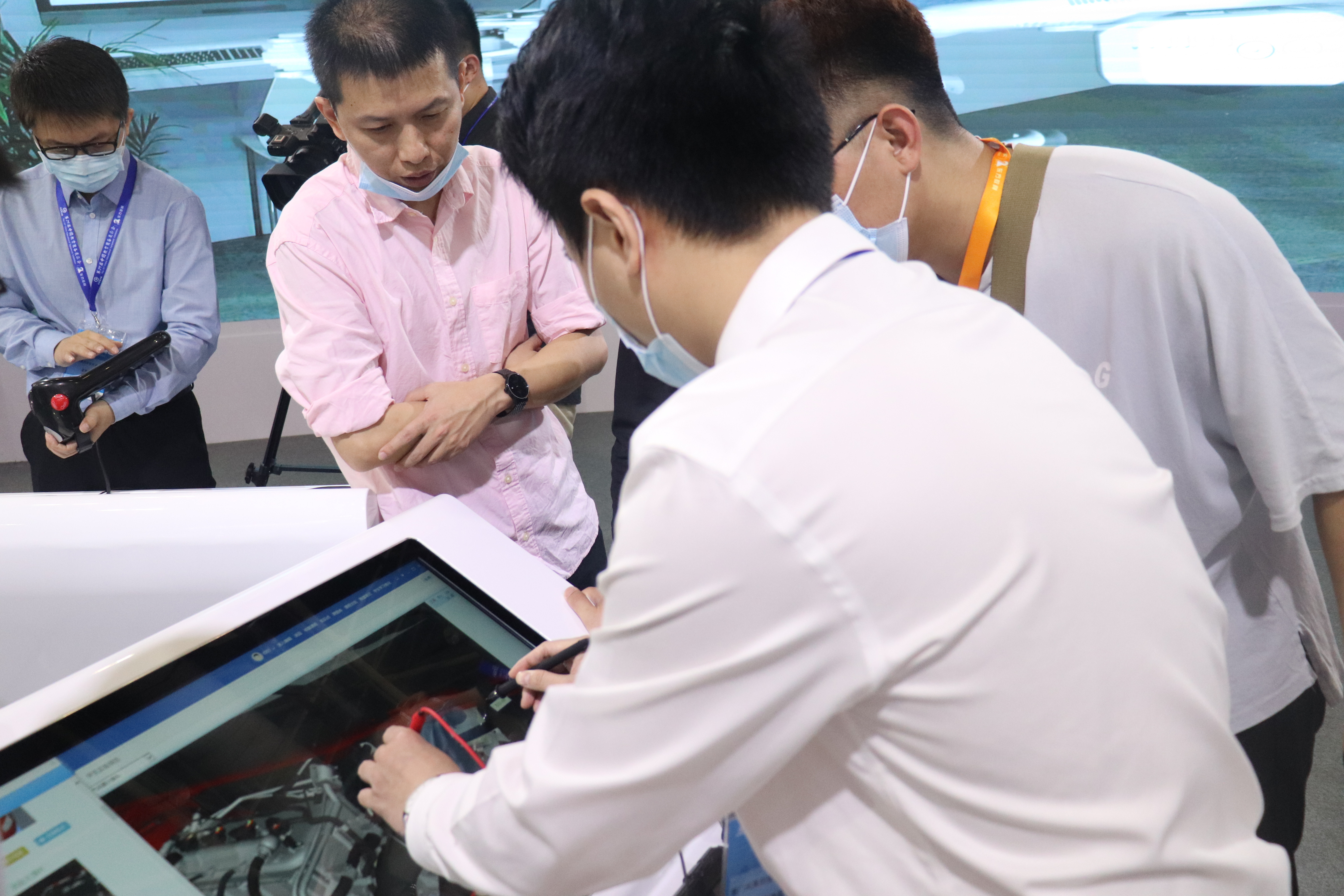 MR教学系统能够将上课老师的实时影像与三维立体VR仿真设备、仪器、仪表等在教师教学场景的实际空间融合在一起,老师可以对VR仿真设备等进行实时操作,学生戴上立体眼镜就能够沉浸到老师教学场景同一空间中实时看到老师在操作的三维VR仿真设备,从而直观快速理解老师所教学的复杂设备的结构、原理、操作规范等;MR教学系统让学生深度参与教学整个过程,老师跟学生在同一场景下互动教学,学生无需靠抽象理解,身临其境与三维VR仿真设备互动学习,让学生具有跟老师一样的空间想象能力和逻辑思维能力,帮助学生快速学会。