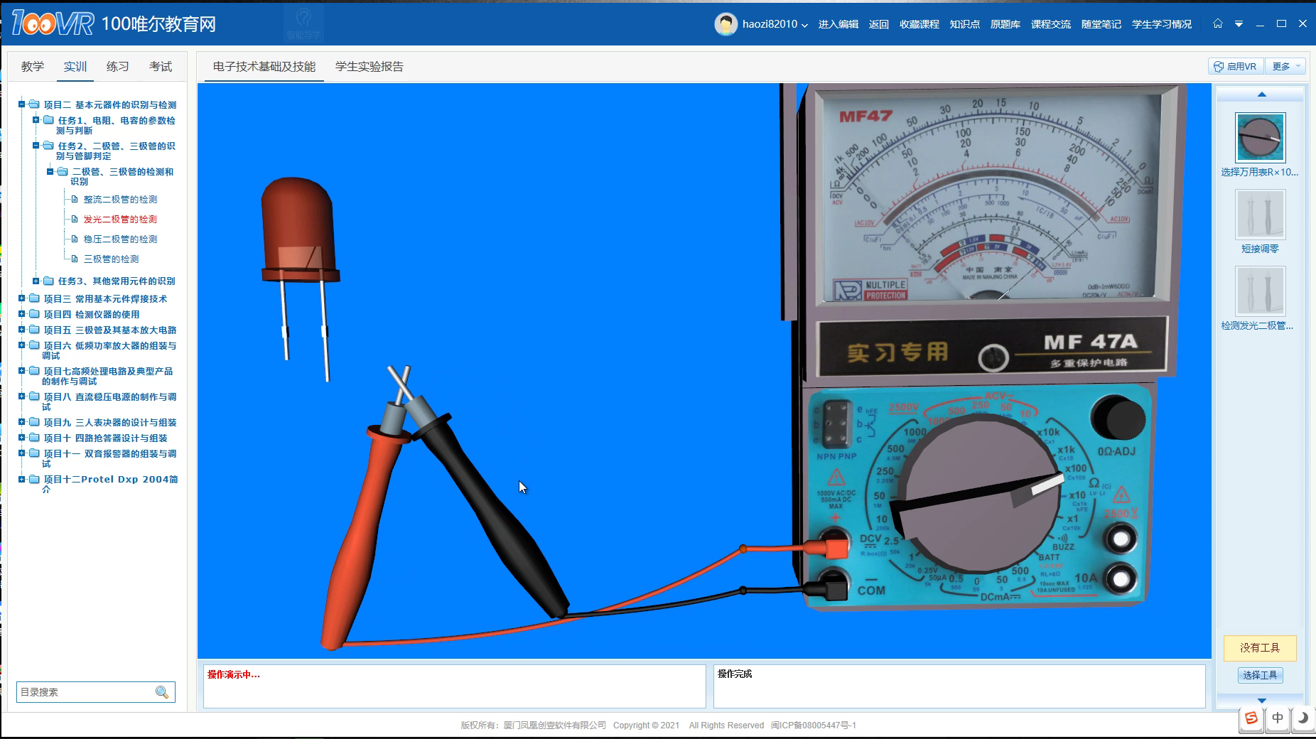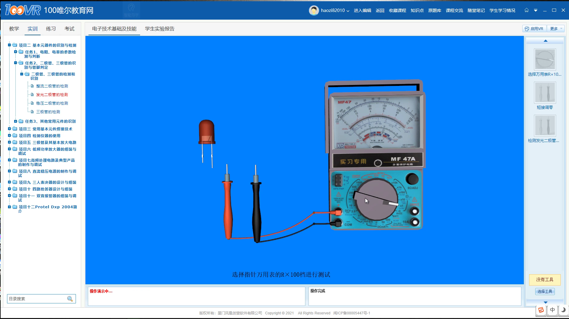 今天100唯尔教育小编就结合100唯尔教育VR仿真课程来介绍下发光二极管的应用和判断等相关知识。