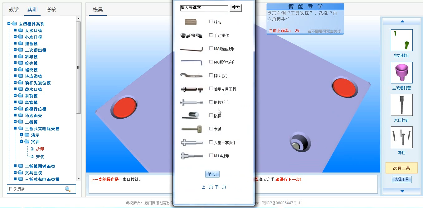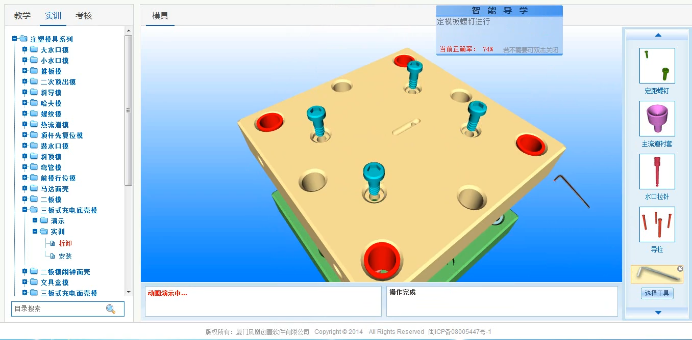 模具是一门实践性较强的课程,包括一系列成形工艺、模具拆装、模具制造等过程。传统的“填鸭式”教学难以将这些过程形象地呈现在课堂上,导致学生缺乏学习兴趣,知识点理解不彻底,实践动手能力差"。模具虚拟仿真系统是“思维可视化”教学的一种重要技术手段,目的是使学生身临其境地体验和学习模具知识模块,提升学生的实践技能和教育教学质量。