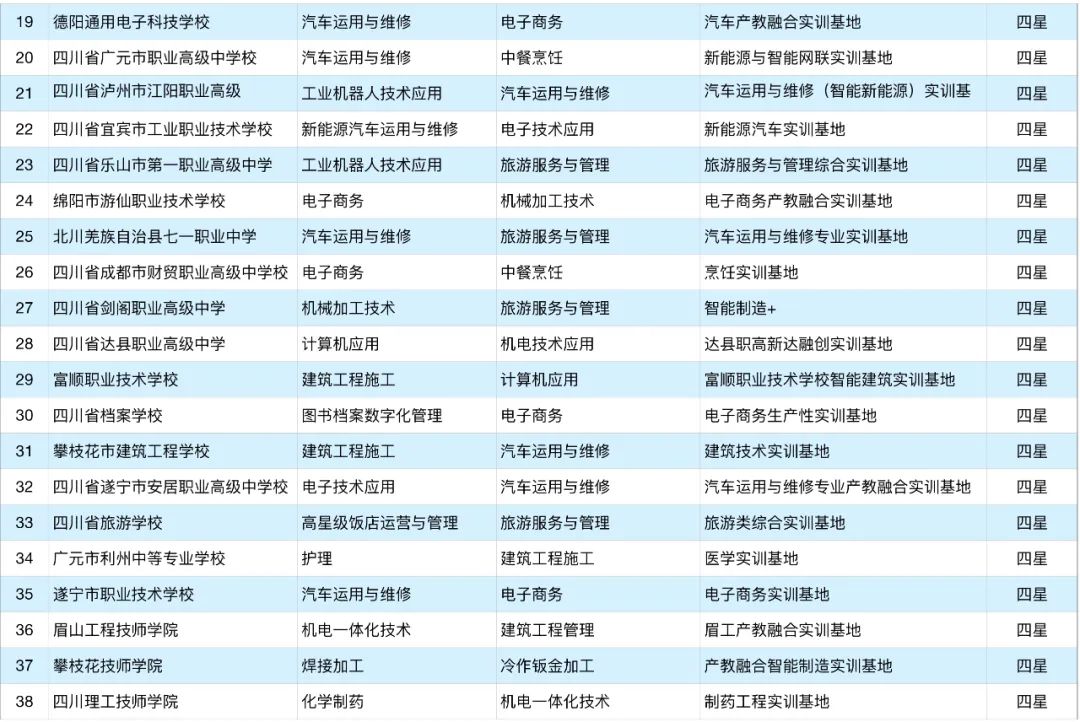 四川省中等职业教育名校名专业名实训基地立项建设名单