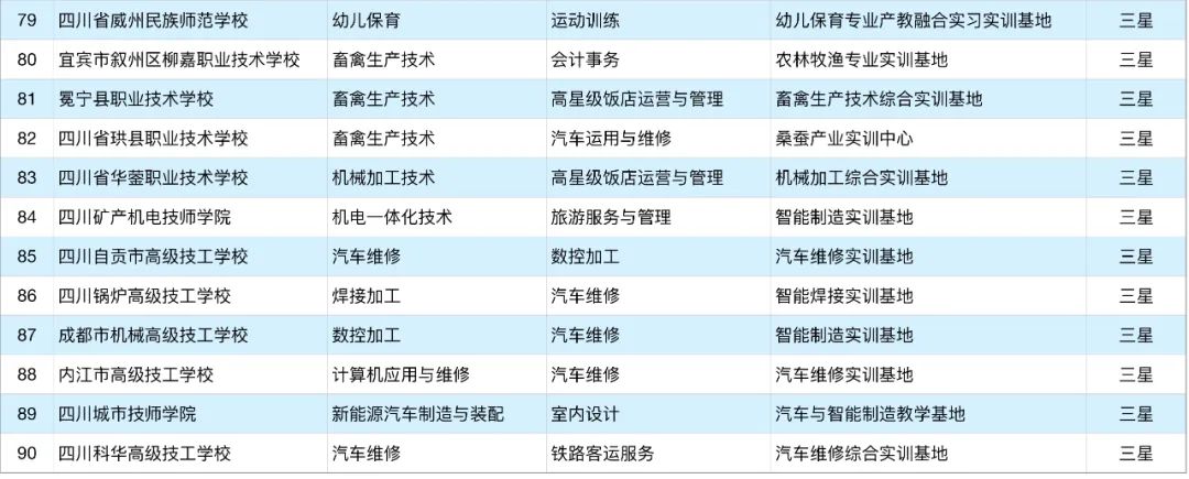 近日,教育厅、人力资源社会保障厅、财政厅印发《关于公布四川省中等职业教育名校名专业名实训基地建设工程立项建设名单和开展项目建设工作的通知》(以下简称《通知》,公布了四川省首批立项建设的90所中等职业教育名学校、180个名专业和90个名实训基地名单