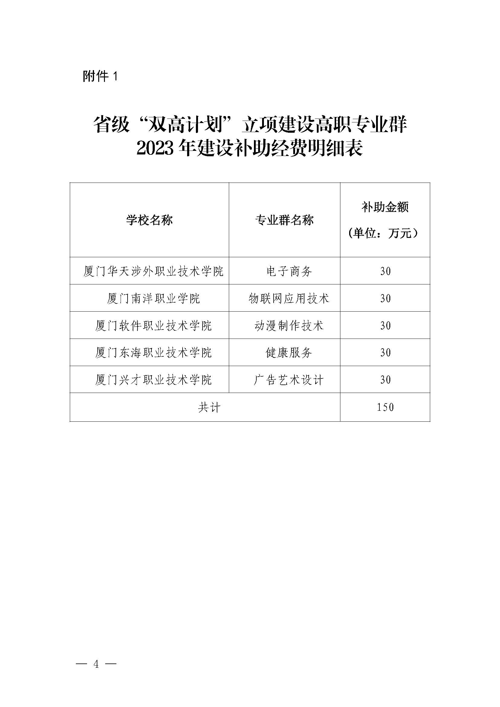 本次下达的资金为我市民办高职院校5个省级“双高计划”立项建设高职专业群建设补助经费各30万元(见附件1)。