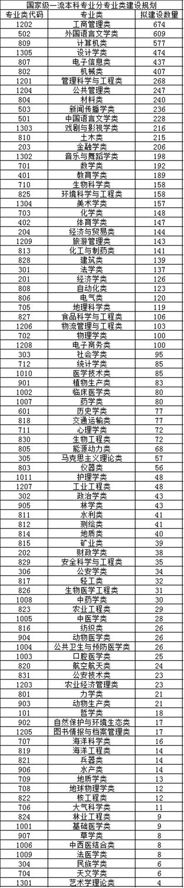 其中国家级一流本科专业点工商管理类、外国语言文学类、计算类数量最多,分别为674/609/577个。