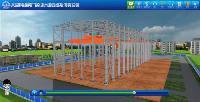 图为哈尔滨工业大学大型钢结构厂房设计建造虚拟仿真实验