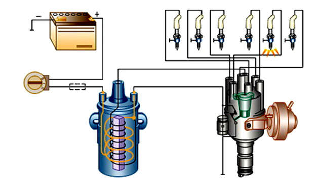 在汽油机中,气缸内的可燃混合气是*电火花点燃的,为此在汽油机的气缸盖上装有火花塞,火花塞头部伸入燃烧室内。能够按时在火花塞电极间产生电火花的全部设备称为点火系,点火系通常由蓄电池、发电机、分电器、点火线圈和火花塞等组成。