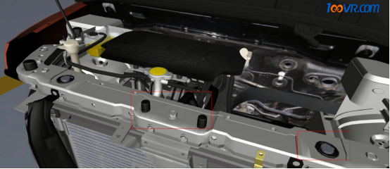 图为100唯尔教育引擎盖大、小缓冲块扭到位操作