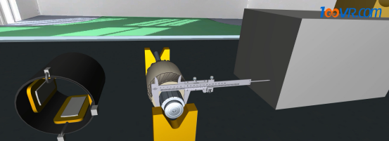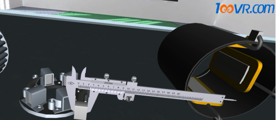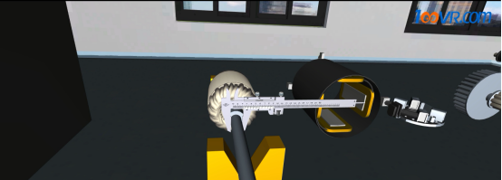 图为100唯尔教育用游标卡尺检测轴颈外径与衬套内径