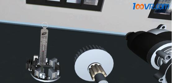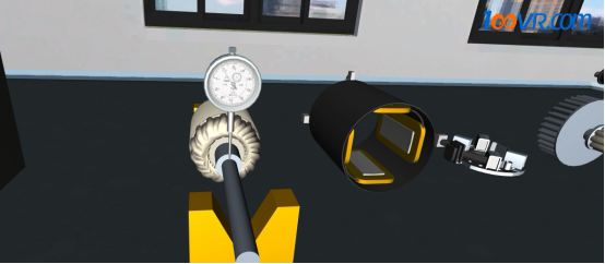 图为100唯尔教育用百分表检测电枢轴弯曲