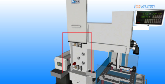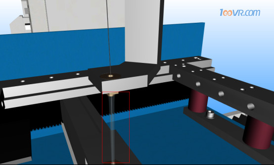 在主轴锁紧螺母未锁紧的情况下,按主轴升按钮则主轴向上运动,按主轴降按钮则主轴向下运动。顺时针旋动锁紧螺母,主轴不能上下移动。若操作者面向主轴,顺时针转动U轴调节钮,主轴趋向操作者移动。顺时针转动V轴调节钮,主轴向右移动。逆时针转动端部小钮,主轴向左移动。