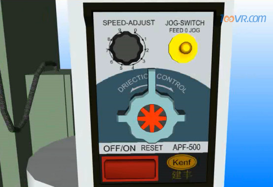 9. 拨动JOG SWITCH键至0位置,工作台停止右移