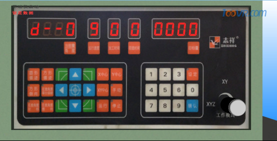X轴手柄顺时针转动是向+的方向运动,逆时针是向-的方向运动。Y轴手柄顺时针转动是向+的方向运动,逆时针是向-的方向运动。每一小格是0.02mm,一圈是500小格。而且X/Y轴进行运动时,其进给量的多少都会在控制柜的显示屏的坐标系里进行显示和变化。
