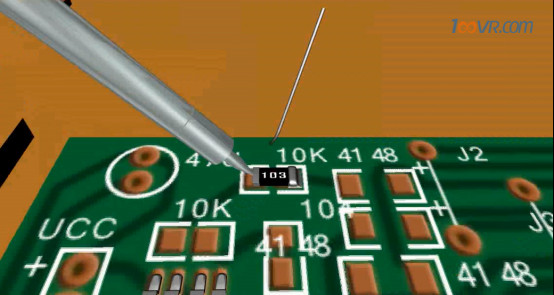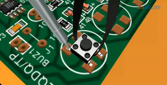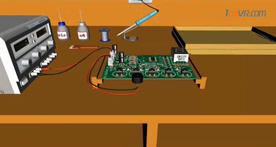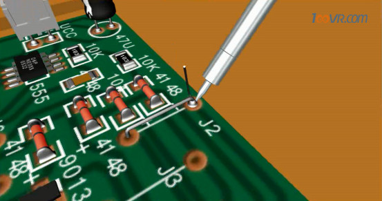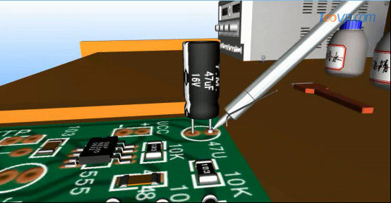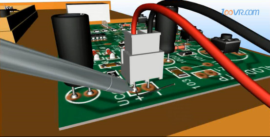图为100唯尔教育用电烙铁和焊锡焊接点的另一端