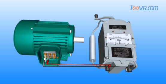 使用摇表,“L”端依次接在各相绕组的引出端,将“E”端接在不涂漆的机壳上。其次,测量相间绝缘性能。平衡的转动手柄,使转速保持在120r/min,指针应该大于5MΩ,证明绕组对地电阻符合绝缘标准。