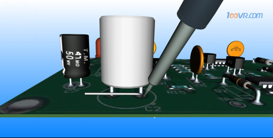 图为100唯尔教育对管脚少的元件进行固定焊接