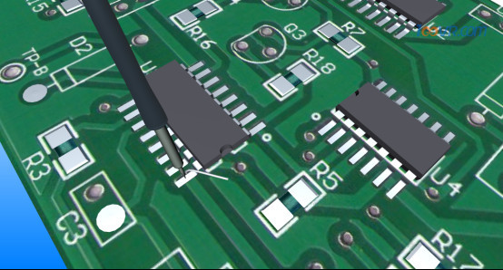 对于管脚少的元件,可左手拿焊锡,右手拿烙铁,依次点焊即可。对于管脚多而且密集的芯片,除了点焊外,可以采取拖焊。
