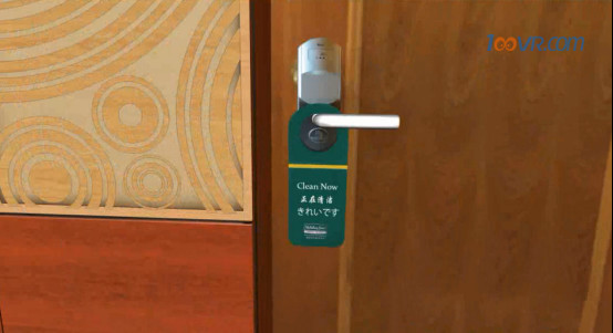 1. 进房确认无人后将“正在清洁”牌挂在门把手上。