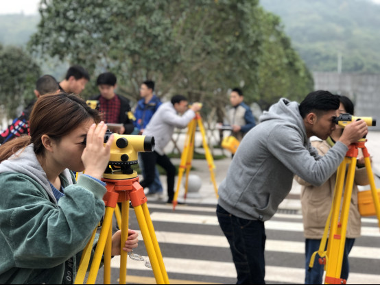 图为水准测量参赛选手比赛瞬间