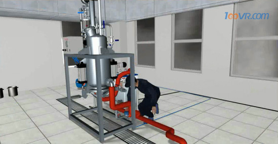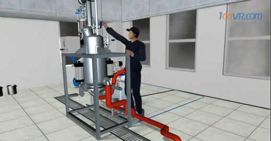 图为100唯尔教育操作工打开输出蒸汽阀门