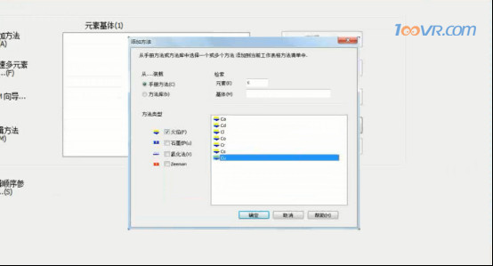 2.打开相关的操作软件,点击电脑桌面上的SpectrAA软件图标,选择主界面中的WorkSheet按钮,选择“新建”按钮建立新工作表格,选择要采用分析表格的仪器并点击确定。选择目标文件夹,根据要求命名文件,并点击确定。点击“添加方法”按钮,选择方法类型为“火焰”。选择要分析的元素,并点击确定。