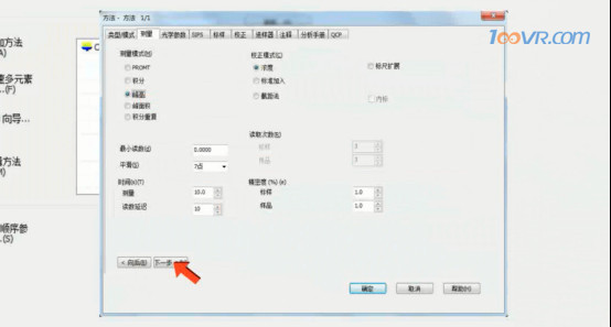 3.双击选取的元素或者点击“编辑方法”按钮打开方法对话框,选择进样模式为手动,选择仪器模式为吸收,并点击下一步,选择测量模式为“峰高”,设定“时间”、“读数次数”,并点击下一步。