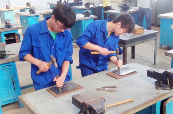 图为100唯尔教育正握錾子