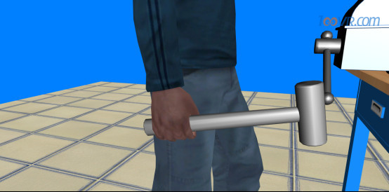 而手锤的松握法则是只用大拇指和食指始终握紧锤柄。在挥锤时,小指、无名指、中指则依次放松;在锤击时,以相反的次序收拢握紧。这种握法的优点是锤击力大。