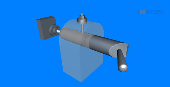 推进螺杆向左快速移动,接近前方工件,当接触到工件时,转动手柄,夹紧螺旋槽旋紧,工件夹紧完毕。