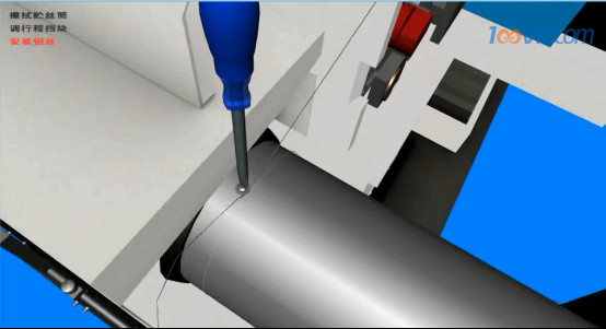 ③将右边撞块压住换向行程开关触点,左边撞块尽量拉远。