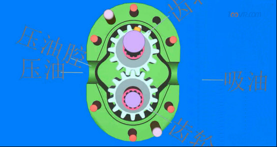 常用的为外啮合齿轮泵。其工作原理是装在液压泵壳体内的互相啮合的一对齿轮和泵体,将齿轮泵的内腔分割成左右两个互不相通的工作腔,即吸油腔和压油腔。主要用在≤2.5Mpa的低压液压传动系统中。