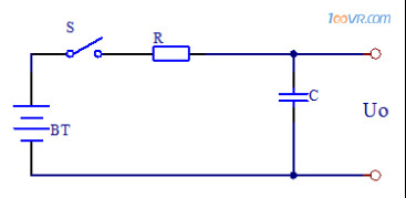 开关闭合前电容C两端的电压uo=0,是一种稳定的状态,当开关闭合后,电容C两端的电压uo逐渐上升最终达到电源BT的电动势E的值,并一直稳定在这个数值上,为另外一种稳定的状态uo=E。