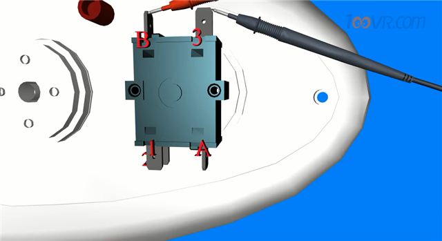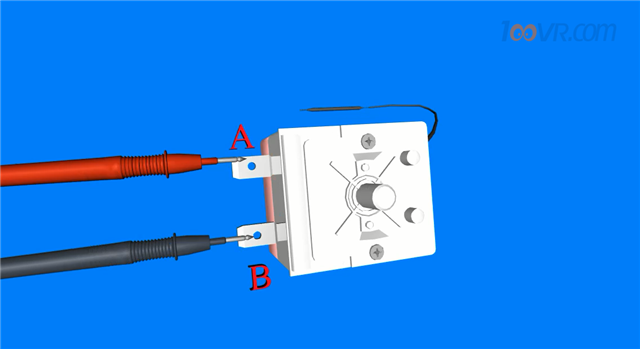 14.加热至预设值将万用表的红黑表笔分别接触温控器的两个触点A/B,测出其电阻为无穷大。测量数据及现象表明本器件的质量良好。如果用万用表测出温控器损坏则要更换温控器。如果温控器良好,则要检查功率选择开关是否损坏。