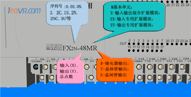4.R表示继电器输出,T表示晶体管输出,S表示晶闸管输出。