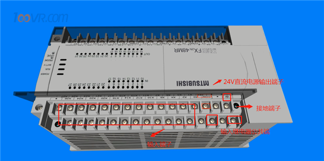 ②接地端子、24V直流电源输出端子,输入继电器公共端、输入端子