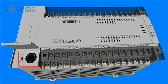 4.通信端口与状态开关:使用编程线缆通过通信端口与电脑连接,可以方便的写入或读取PLC程序。当状态开关拨到RUN位置时,PLC状态指示灯中的RUN指示灯亮起,PLC处于工作状态。当状态开关拨到STOP位置时,PLC状态指示灯中的RUN指示灯灭,PLC处于待机状态。