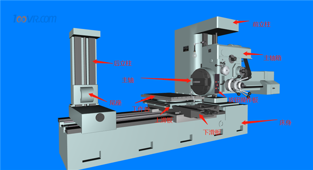 3.辅助运动:工作台的回转运动、后立柱的轴向水平移动、尾架的垂直移动以及各部分的快速移动。