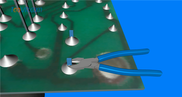 2.安装电阻和二极管,拿烙铁和锡靠近引脚,将该引脚焊好。对板上另一端焊盘引脚焊好,然后将其余元件焊好。