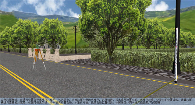 1.横坡测量只需相对高差,在合适位置架设水准仪,方便观测为宜。