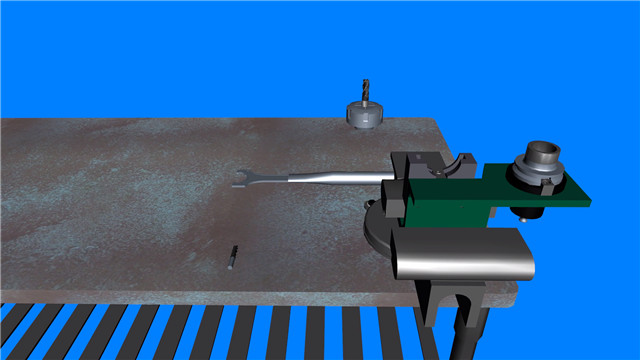 带孔铣刀要采用铣刀杆安装,先将铣刀杆锥体一端插入主轴锥孔,用拉杆拉紧。通过套筒调整铣刀的合适位置,刀杆另一端用吊架支承。