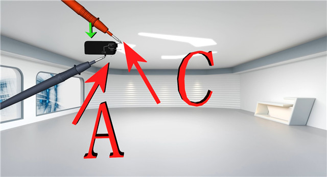 使微动开关处于按下按钮状态,将万用表的红黑表笔分别接触微动开关的两个触点A-C。LED亮,发出短路报警声,测出电阻值为0。