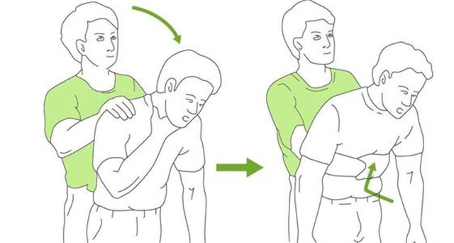 另一只手紧握此拳向后冲击数次,直至异物排除