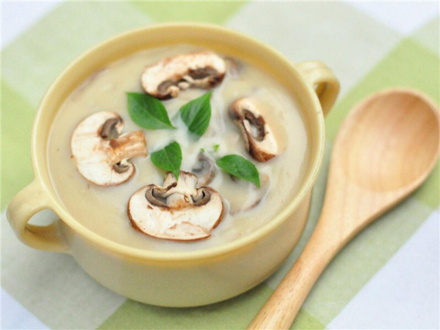 奶油蘑菇汤是西餐中特别经典的一道汤品,法国菜谱之一,以蘑菇为制作主料,奶油蘑菇汤的烹饪技巧以白烧为主,口味属于奶汤咸鲜。制作时要不停搅拌,让原料充分混合,至汤汁浓稠。搭配自制的面包可以中和口味,也不会感觉腻口。