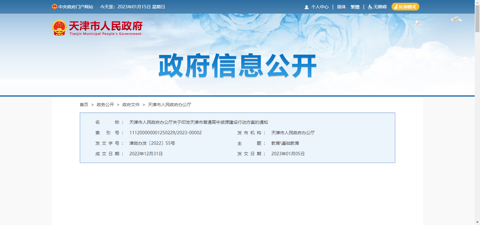 《天津市普通高中资源建设行动方案》发布